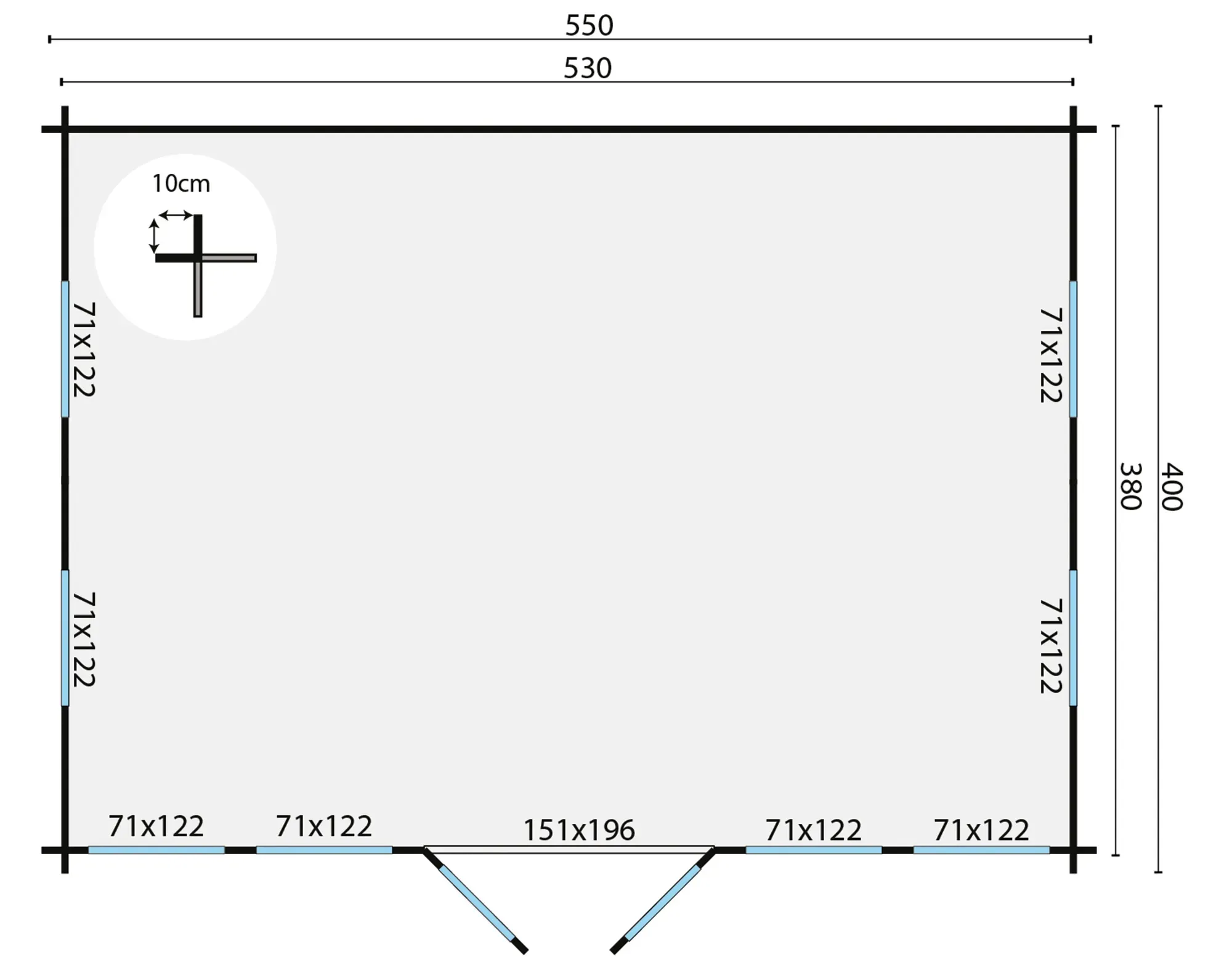 Blokhut – Tuinhuis Clockhouse Trevor | zadeldak | 70 mm | 550 x 400 x 351 cm | vuren