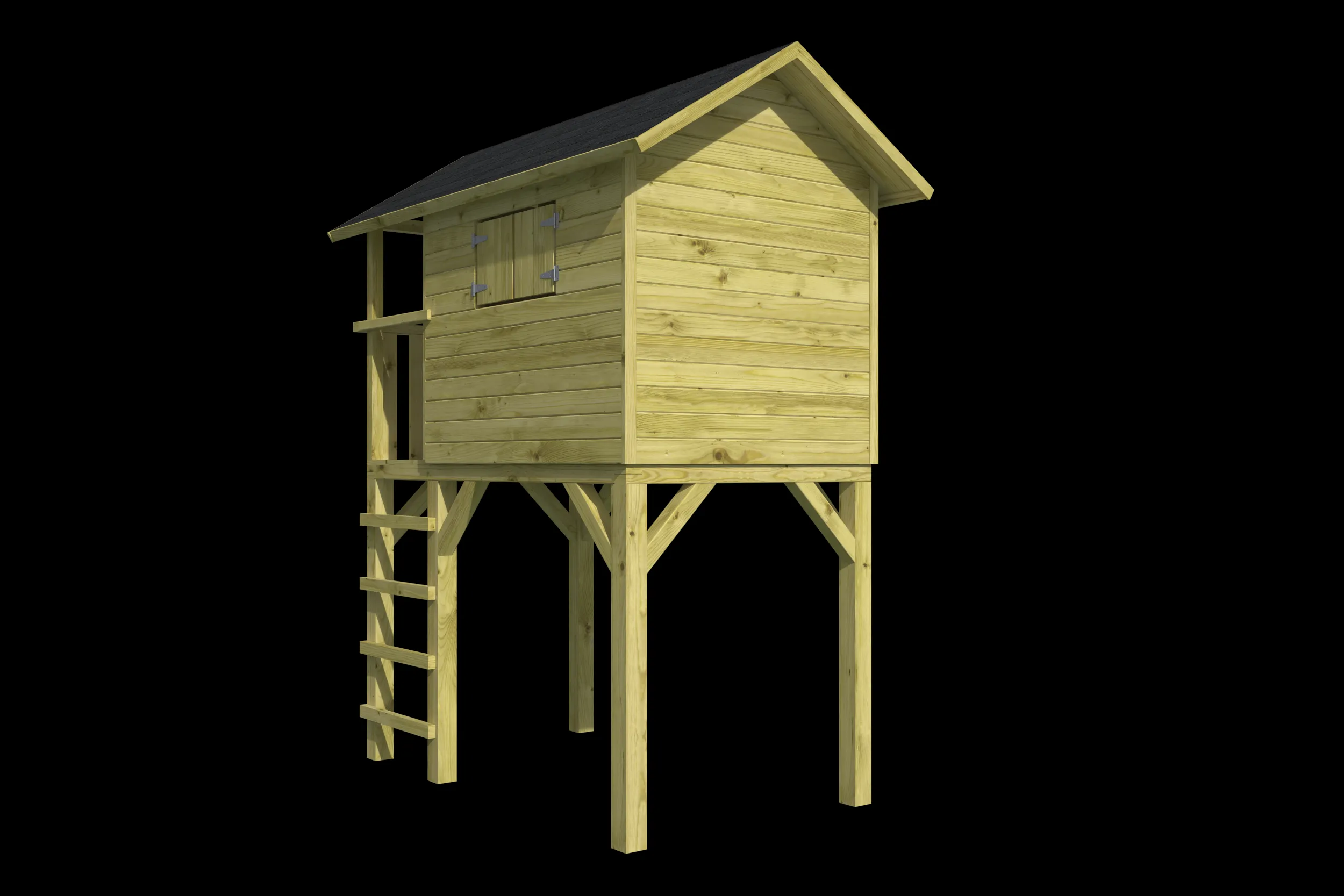 Dit speelhuisje wordt met voorgemonteerde wanden geleverd